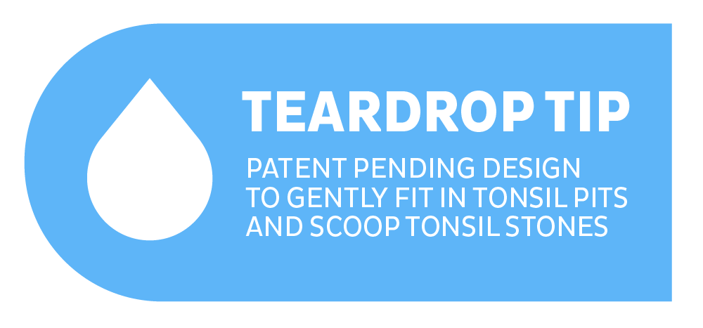 Patent pending design to comfortably fit in tonsil pits & scoop tonsil stones.